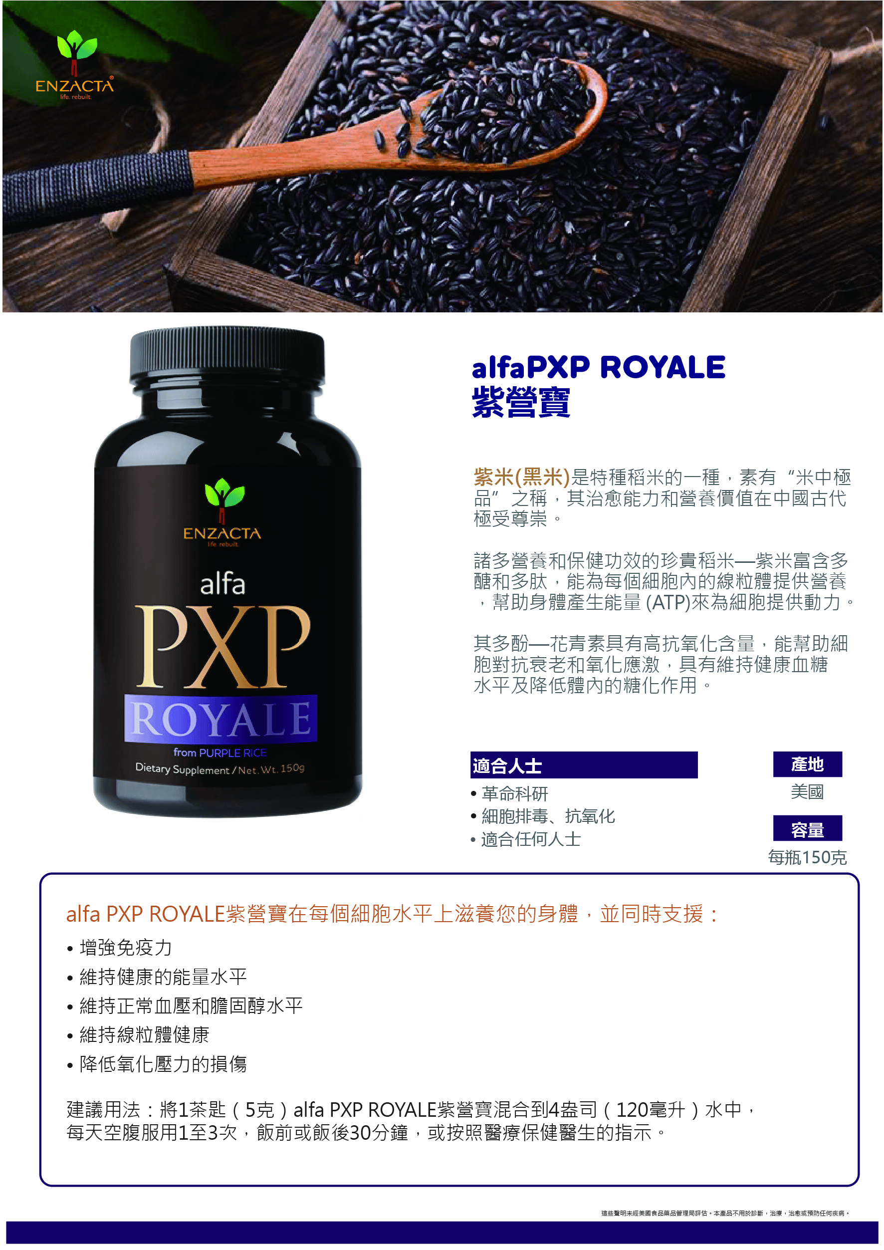 由紫米製成的膳食產品。這種天然色素沉澱的特選水稻,比非天然色素沉澱水稻含有約6倍的營養成分。這是因為花青素,很多研究表明其是能提供調節生理機能,滋補強身的成分。