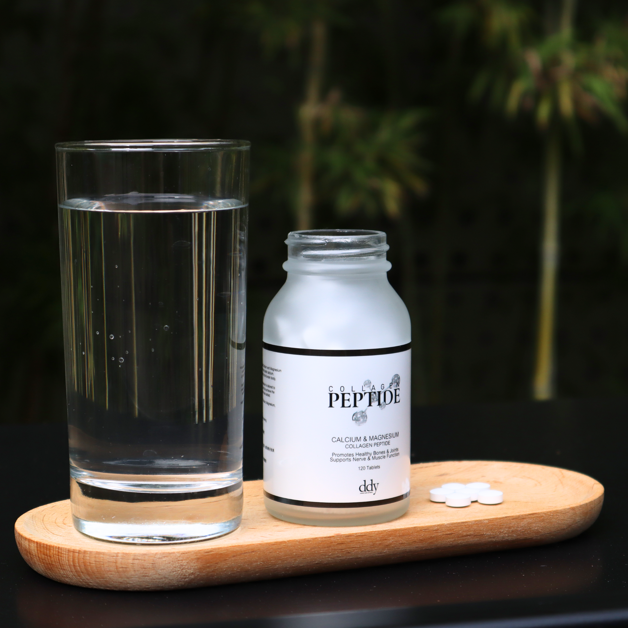 在胜肽膠原蛋白膠囊的基礎上,額外添加鈣鎂成分。利用可被人體迅速吸收的小分子胜肽膠原蛋白作為載體,將鈣鎂元素高效運送至細胞組織完全吸收。
