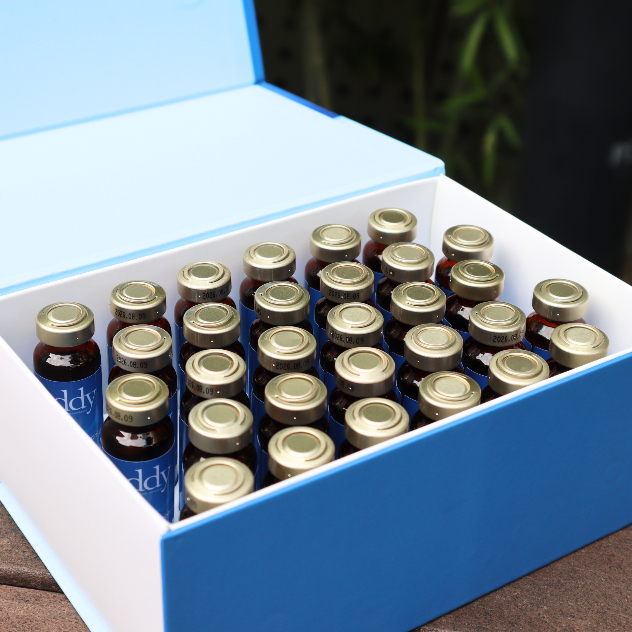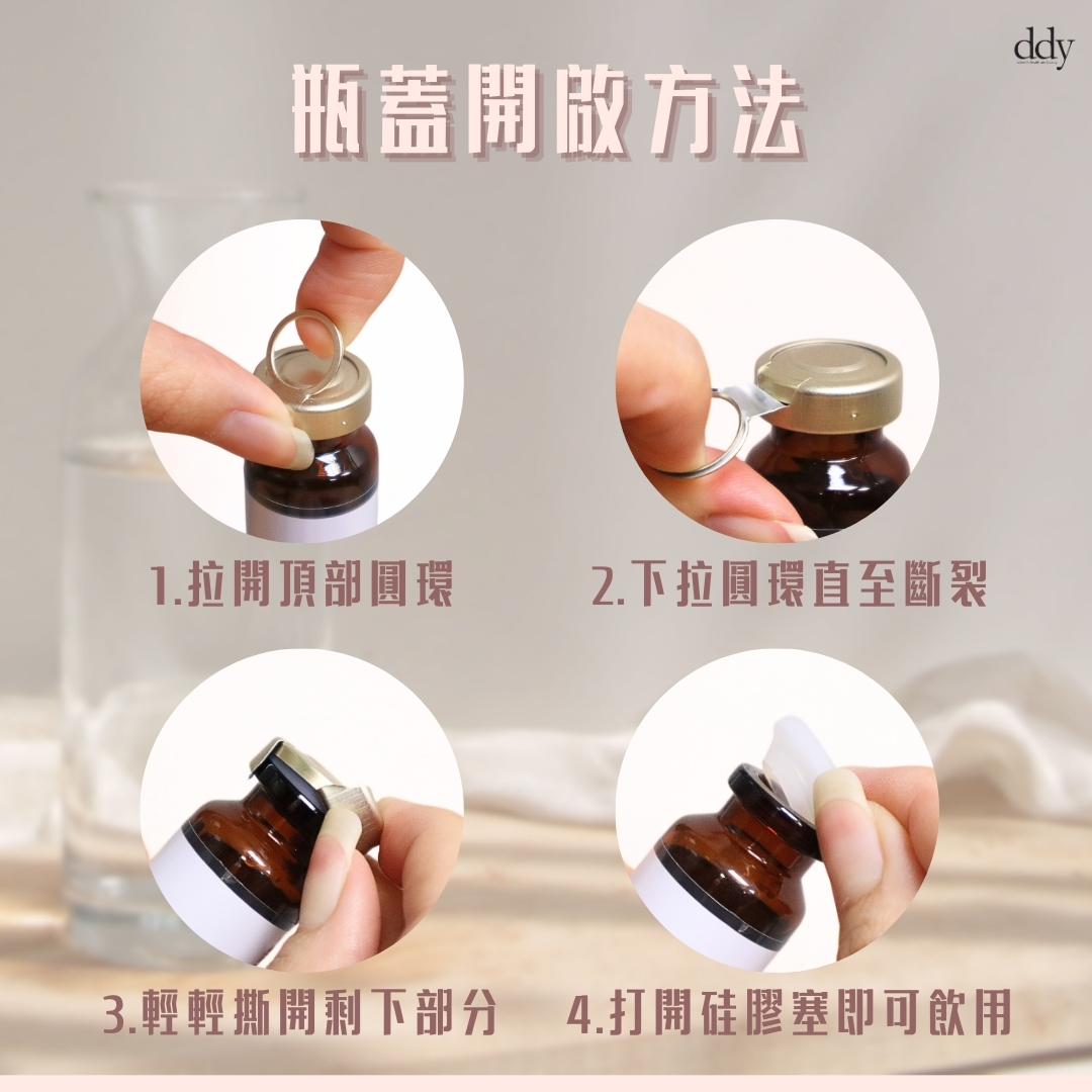 專利無菌遮光茶色瓶身及金屬瓶蓋:真空保存防氧化、減輕變質及流失機會。