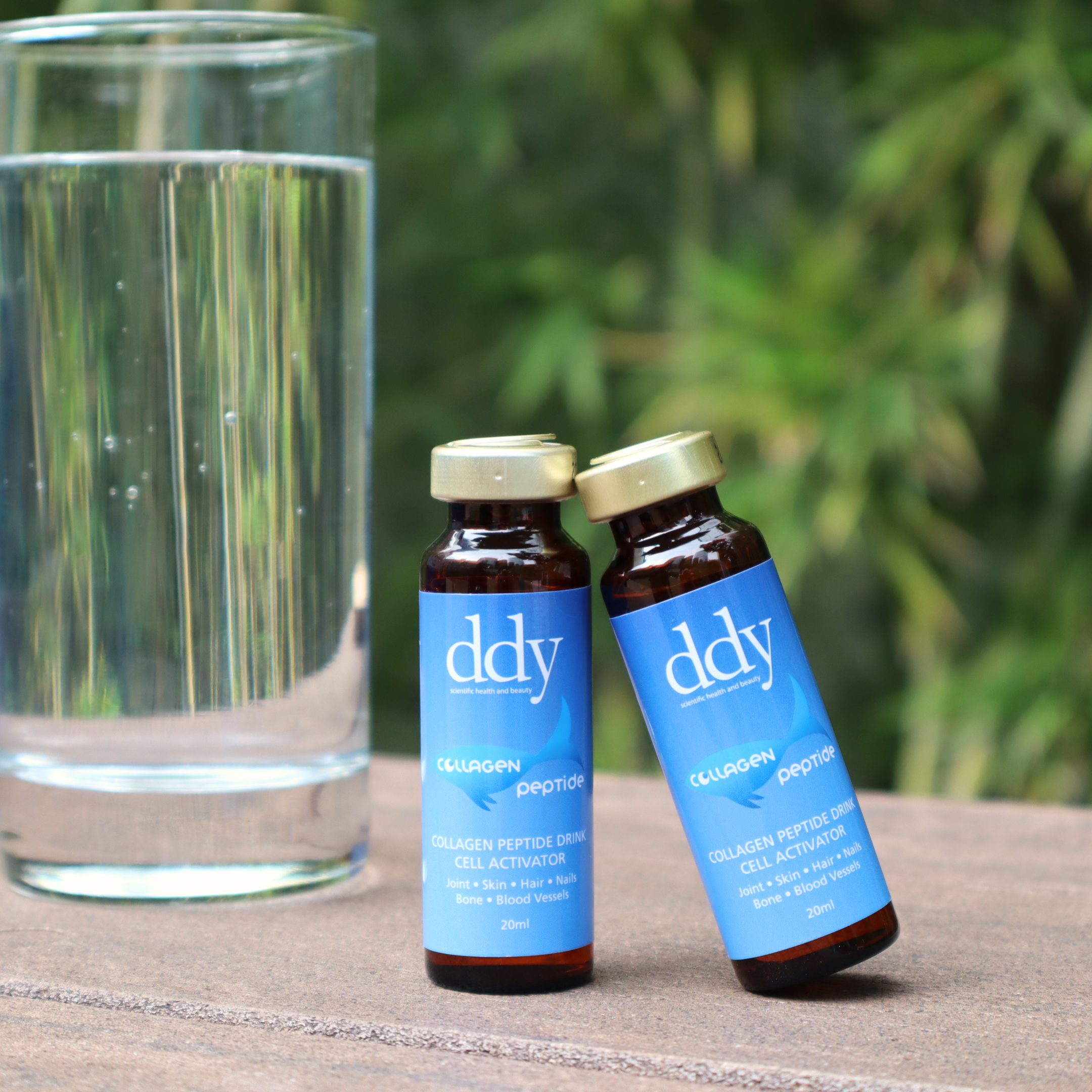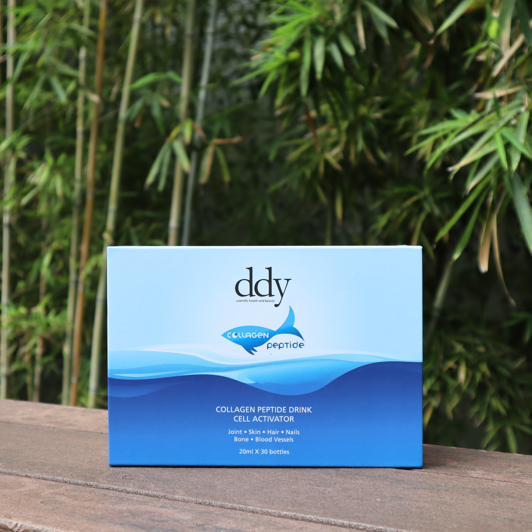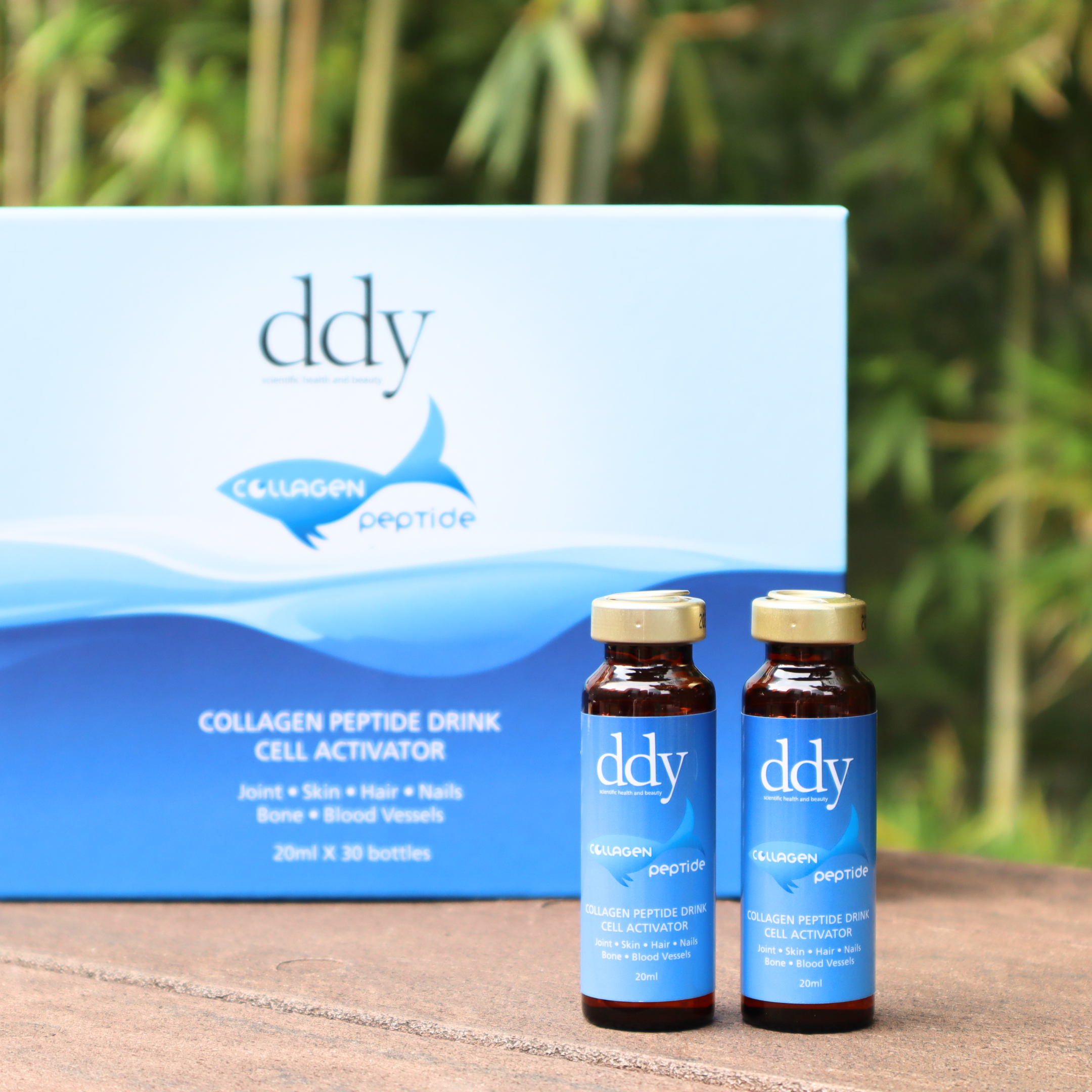 以胜肽膠原蛋白、蘋果酸及純水為主的飲料,胜肽膠原蛋白為98%純度、虱目魚鱗萃取,平均分子量1000 Dalton達「低聚肽」標準,濃度更高,可瞬間吸收,無需二次降解及經腸胃消化。